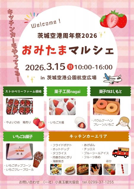 小美玉観光協会では、茨城空港公園航空広場にて、おみたまマルシェを開催いたします🎪今年もいちごづくしのイベントです!